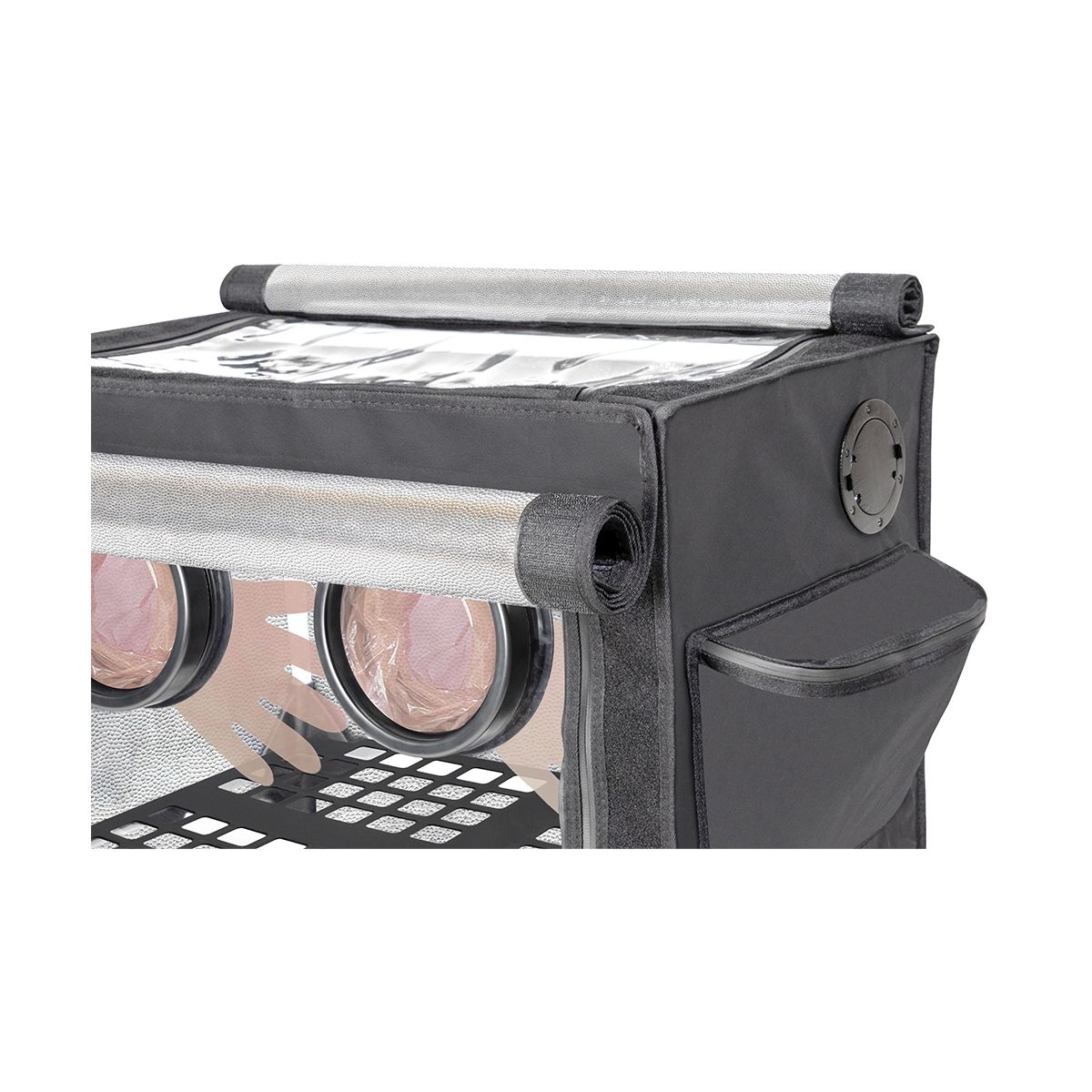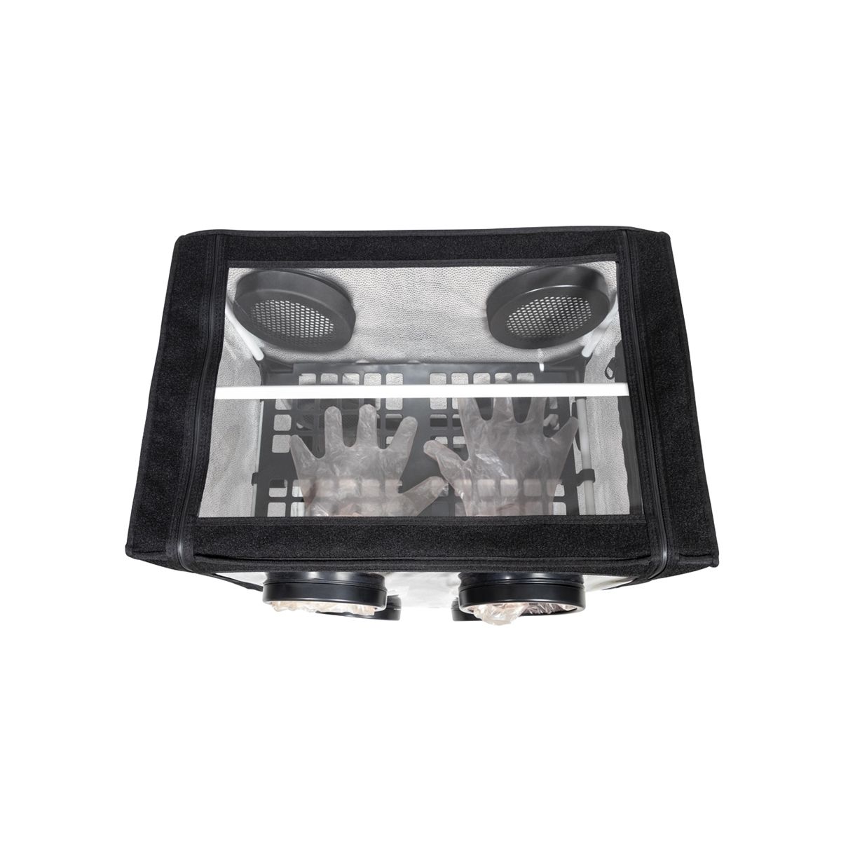 Cette box se distingue par ses 4 gants intégrés, offrant une stérilité maximale tout en gardant un confort de travail optimal, ses 2 bacs de récupération d'eau, et ses deux poches de rangement extérieur.