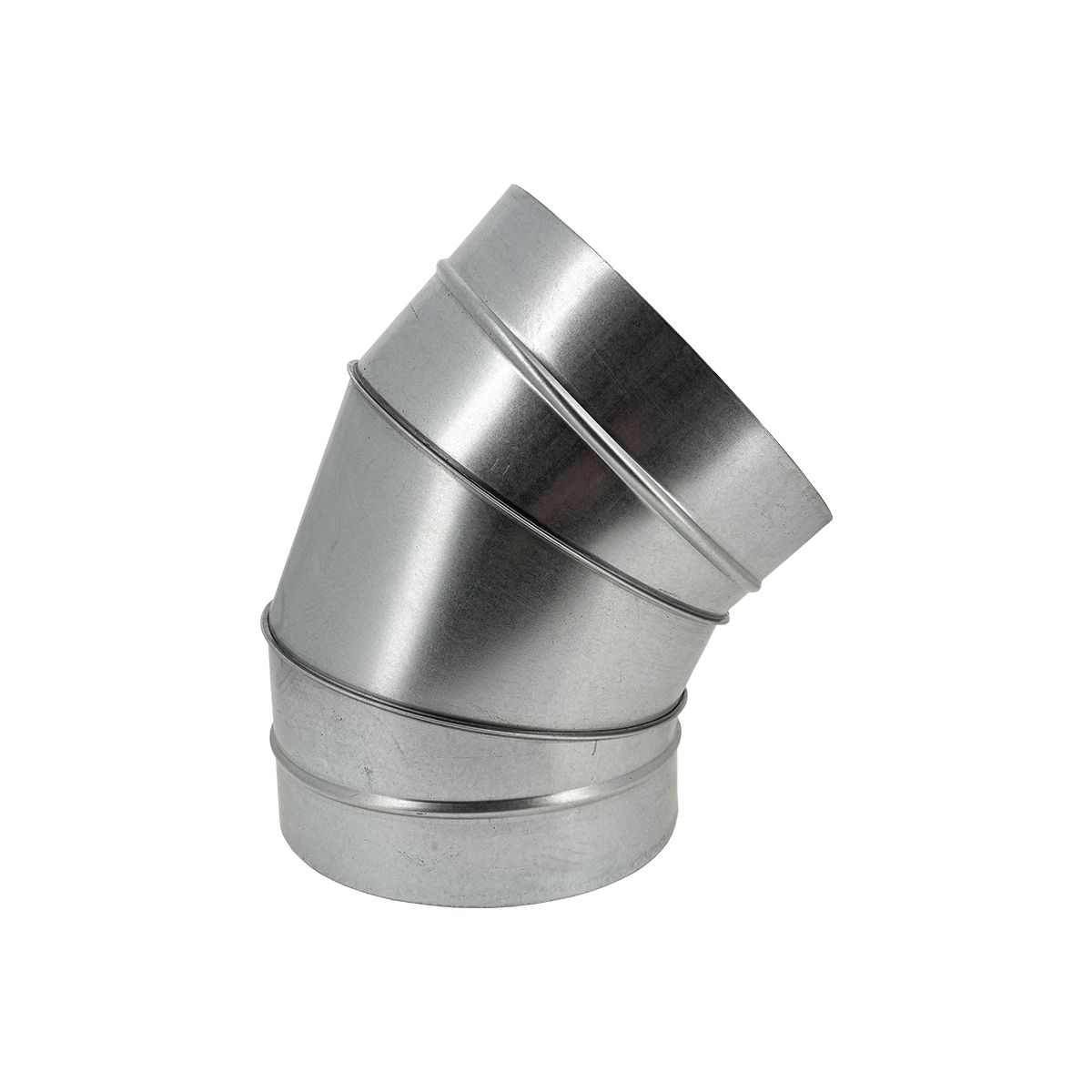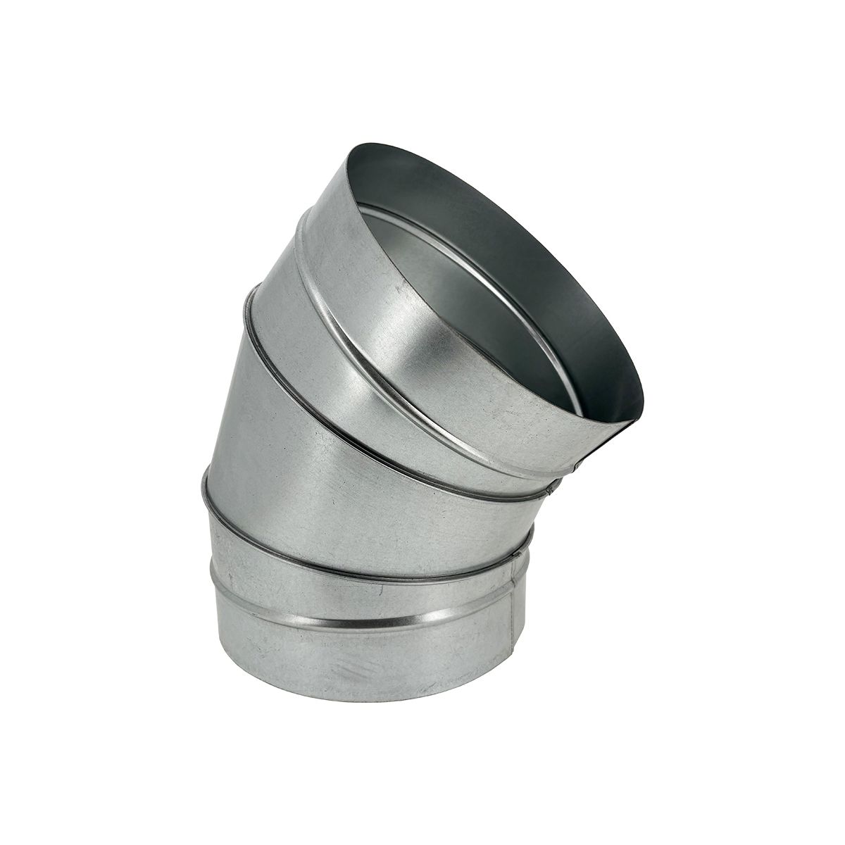 L’angle de 45° assure une transition douce du flux d’air, limitant les pertes liées aux changements de direction trop brusques. Ce type de coude est particulièrement adapté aux installations nécessitant un bon compromis entre performance et flexibilité d’agencement.