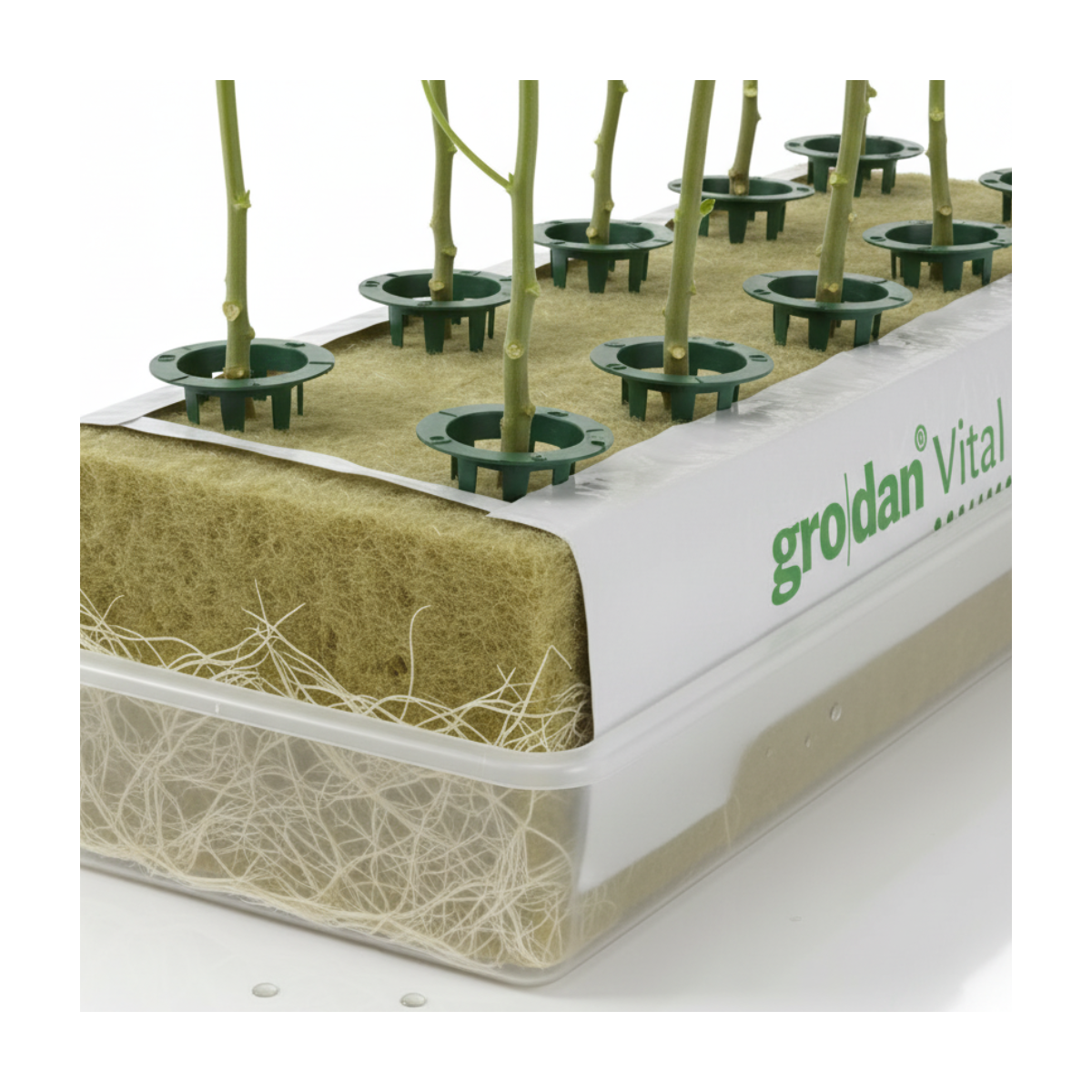 Grodan est spécialiste des substrats en laine de roche pour la culture hydroponique. Offrant une aération optimale et une excellente rétention d’eau, ils favorisent un développement racinaire sain.