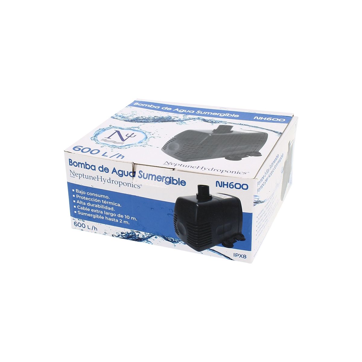 Pompe à eau submersible de 600L/h avec hauteur de refoulement fixe de 1 mètre. Cette pompe Neptune est idéale pour les fontaines car elle est vendue avec un tube télescopique sur lequel se connecteront ses 3 accessoires de diffusion. Elle est également utilisable dans les réservoirs de système hydroponique et les bassins puisque qu'elle peut être immergée jusqu'à 2 mètres.