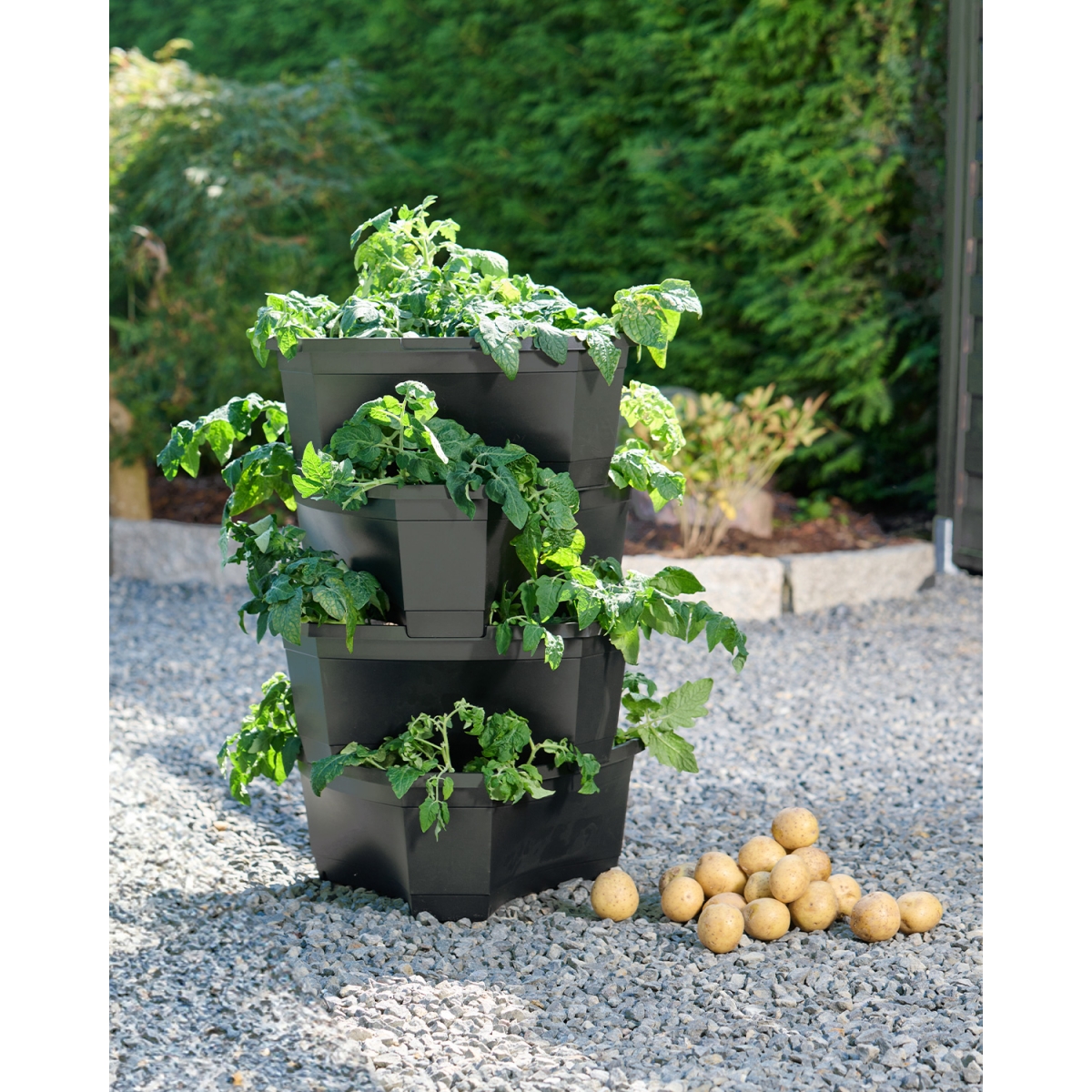 Cette pyramide de culture convient aussi bien à la culture des pommes de terre, herbes aromatiques, légumes, laitues, fraises que des fleurs. Chaque plateau dispose de trous de drainage dans le fond, assurant une bonne circulation de l’eau et des nutriments entre les niveaux.