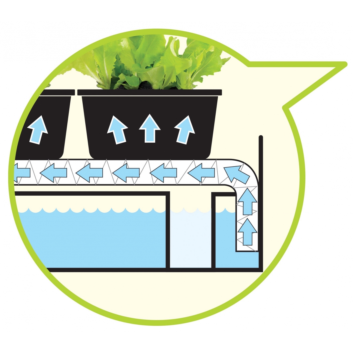 Le mini potager dispose d’un système d’irrigation par capillarité avec natte absorbante. L’eau est progressivement distribuée aux plantes depuis le réservoir, permettant une autonomie pouvant atteindre 14 jours selon les conditions d’utilisation.