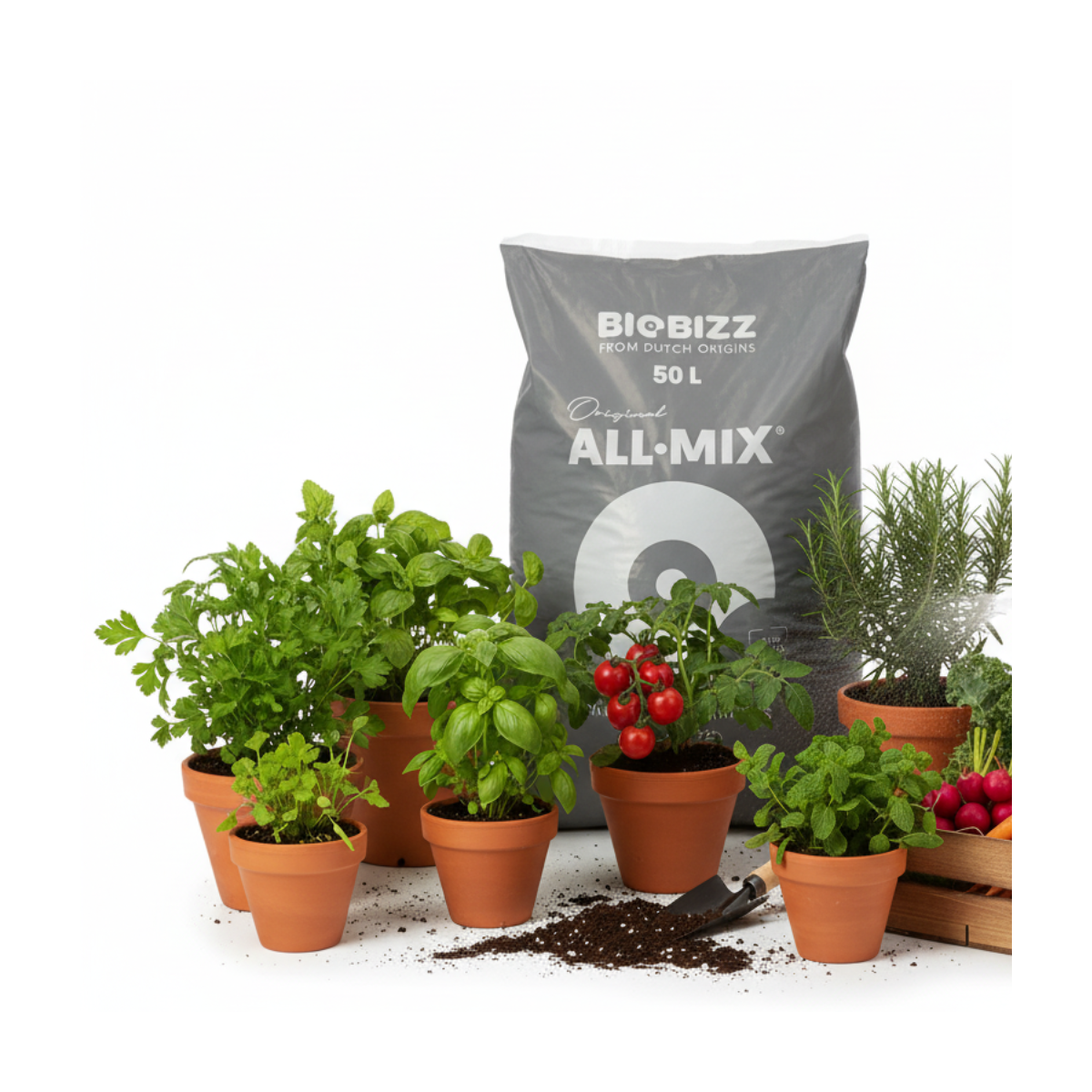 Le terreau All·Mix 50 L de Biobizz est un substrat organique riche et structuré, conçu pour reproduire les conditions d’un sol extérieur fertile. Grâce à sa composition équilibrée en tourbes, perlite et Pre·Mix™, il nourrit vos plantes pendant environ deux semaines sans ajout d’engrais, tout en garantissant une excellente aération et un drainage optimal.